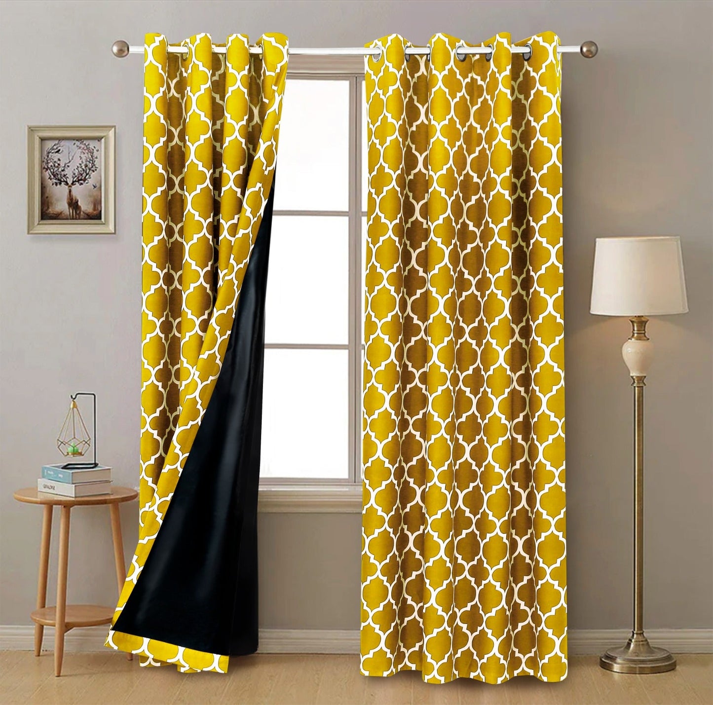 2 PCs Blackout Room Curtains-Mustard Geometric