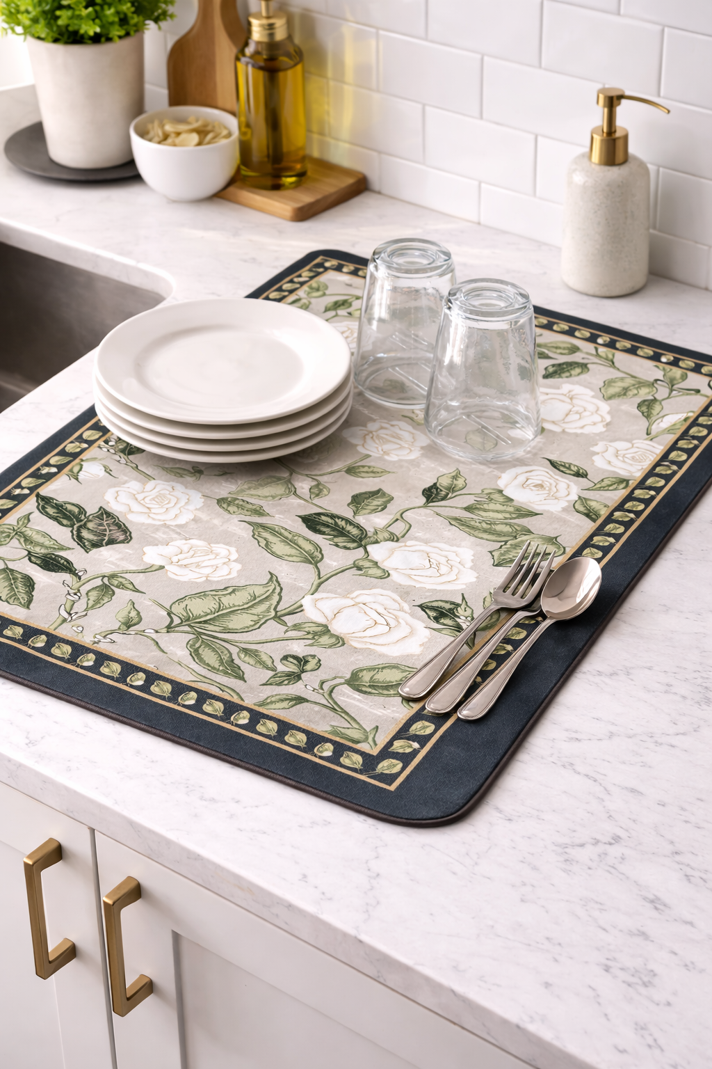 - [ Vintage Gift ] Adopting a retro design, Dry Mat for Dishes is a holiday gift for family and friends, and can be used as a cooking prep area, sink mat and pet bowl mat.