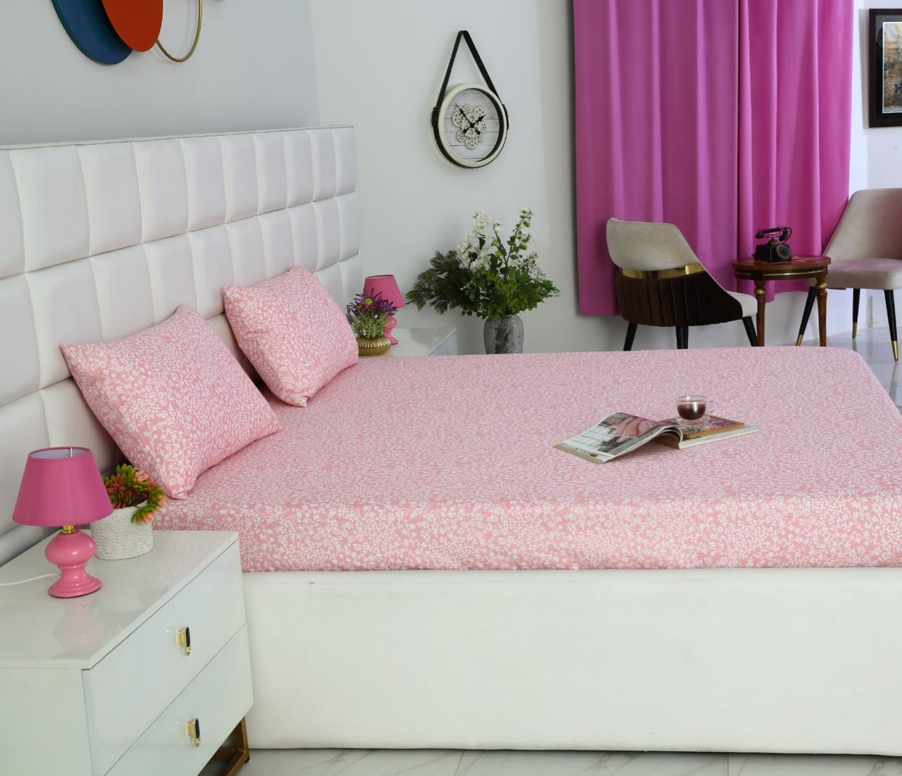 Fitted Bed Sheet-Pink Bloom