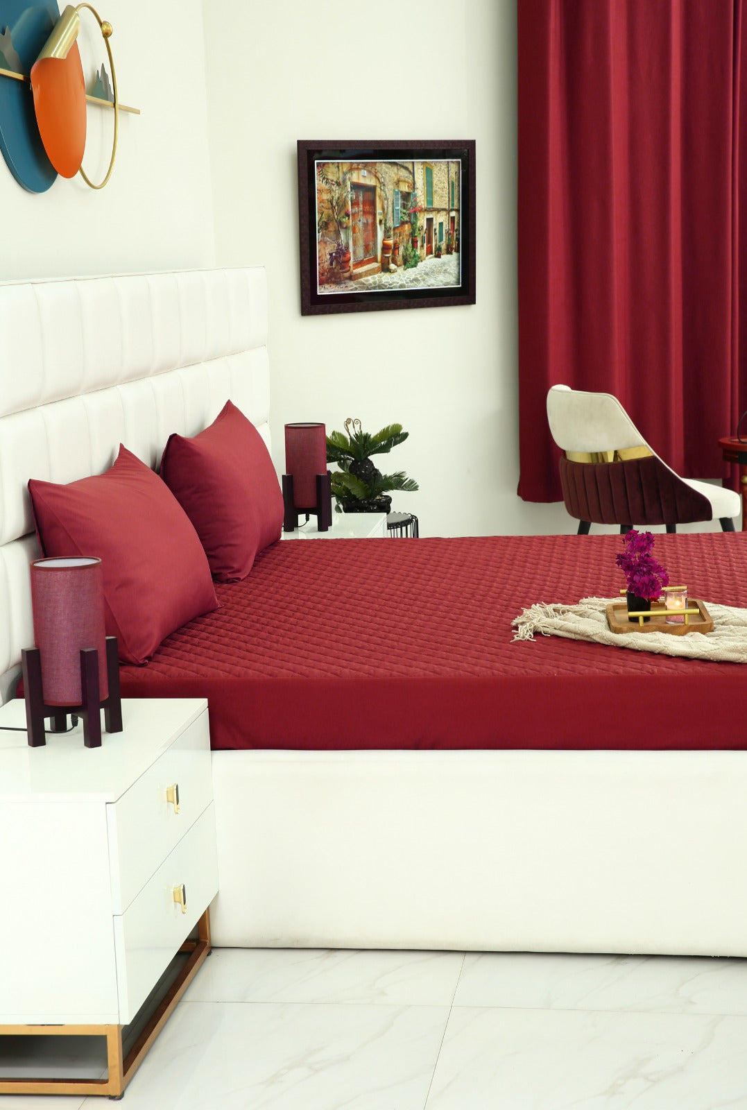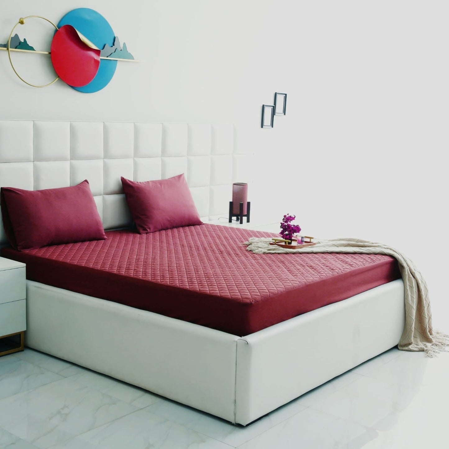 Quilted Waterproof Mattress Protector-Burgundy
